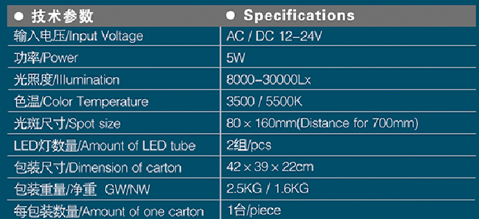 Spot size: Φ70x140mm ( distance for 700mm )